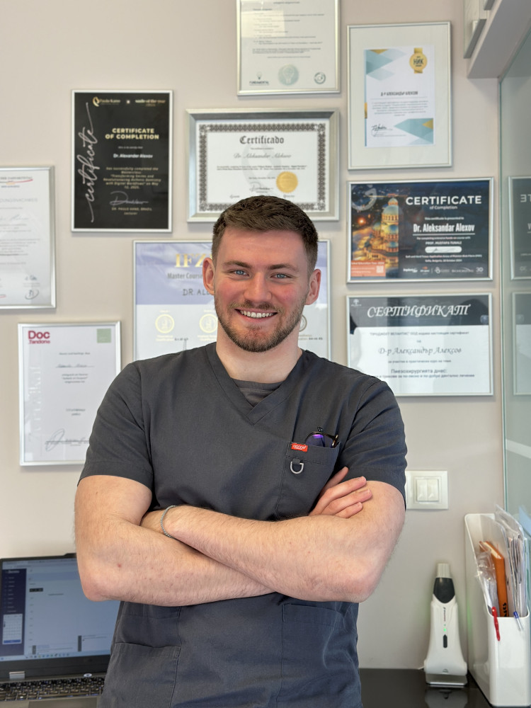 Д-р Александър Алексов е стоматолог в София с опит в сферата на имплантологията, естетиката, протетиката и оралната хирургия. На фокус е цялостната рехабилитация и здравето на устната кухина. След извършването на обстоен първичен преглед се изготвя и индивидуален план на лечение. Работи по целия спектър на стоматологията, за да постигне желания от вас резултат. Д-р Алексаов не преглежда деца.